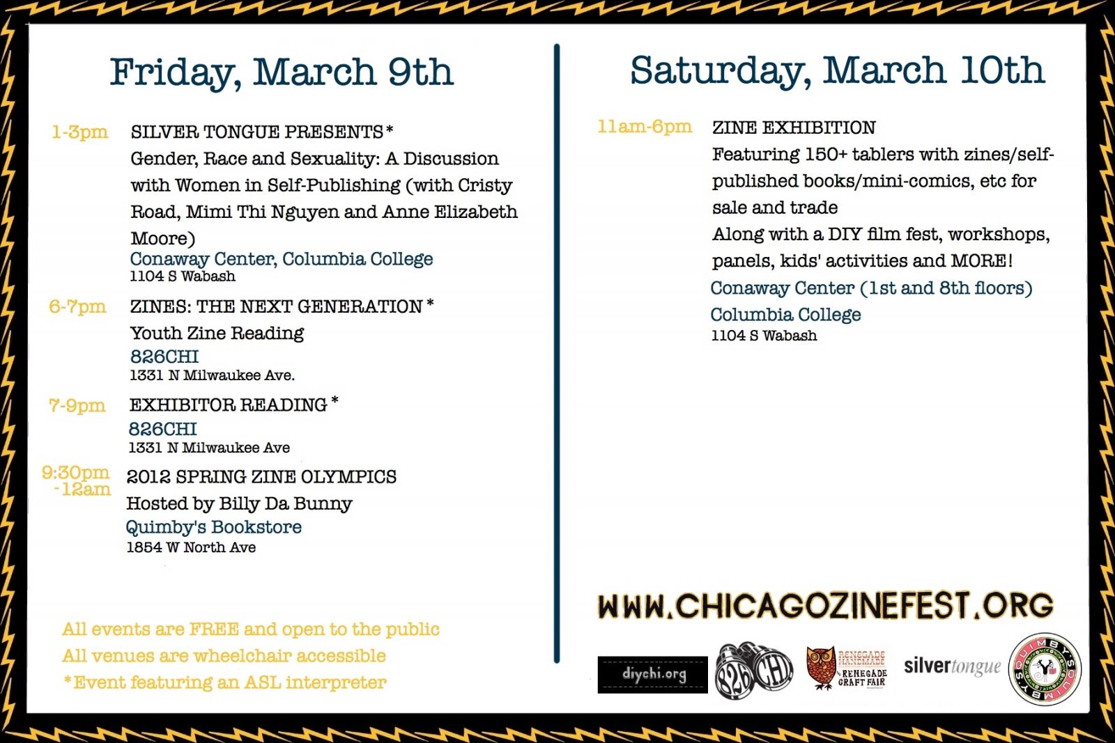 Chicago Zine Fest is fast approaching. THIS WEEK! Friday March 9th and Saturday the 10th. I’ll be there hunting for all things skate-related. You should be there too! Vegetable Shredders, Art Noose and tOM Zombie SoyBot will be hocking their wears. Art Noose, who practices the the fine art of Letterpress will be participating in an Exhibitor event on Friday. I assume the topic will be skate-ramp building or letter-pressing. That is at 826CHI @ 1331 N Milwaukee Ave. This and all other events are Free.