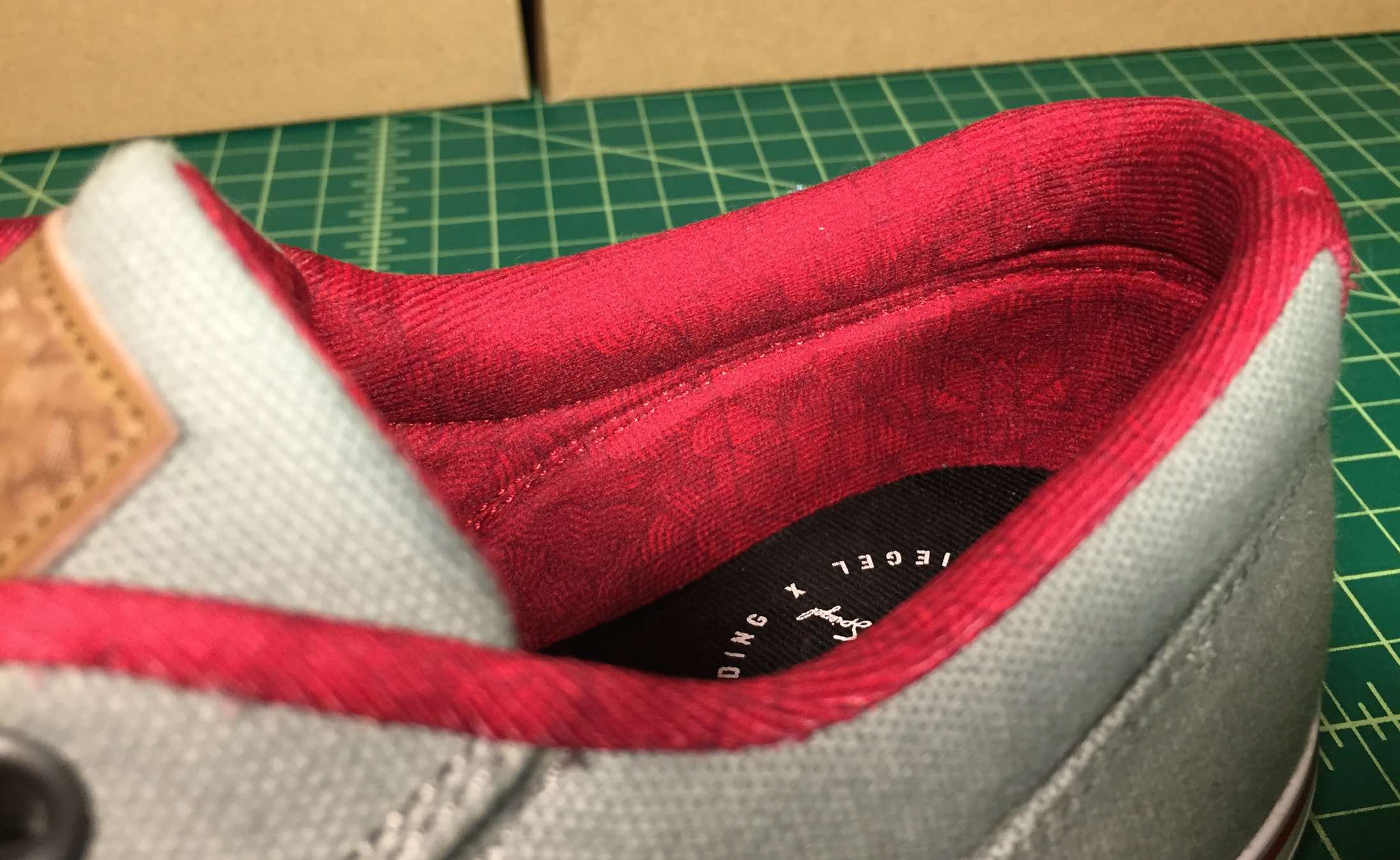 The lightly padded tongue and collar has a soft red lining, with Speigel’s design printed through out.
