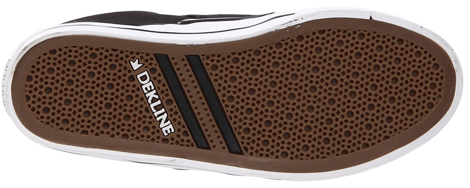 This black canvas shoe is a little more substantial then some of the other Deklines. The toe especially, with an extra layer of thick double stitched canvas. The soles are Vulcs, with some geodesic crazy pattern going on, is that for grip? Super breathablebreathable with all the toe and mid perforations if you have a case of sweat foot.