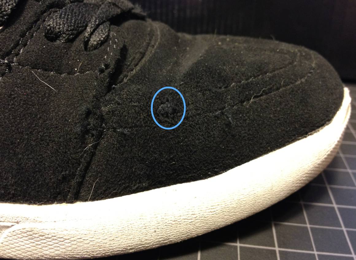 A close-up of that ollie area shows that most of the stitching lines have been hit and have frayed. The shoe still feels tight when laced up and doesn’t feel blown out. Only a tiny hole has started to open up which has moved past the first layer of synthetic suede.