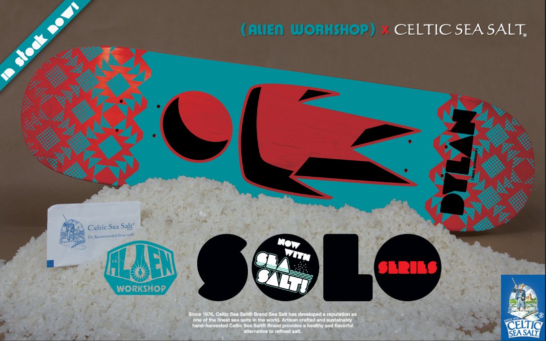 this Alien Workshop deck, it comes with sea salt. I have almost exclusively skated workshop for 20 years and their graphics have always fascinated me. The other day this Solo Deck made me feel like i was having one of those moments in my life, when seemingly disconnected events are nonsensically attached. But way less profound.