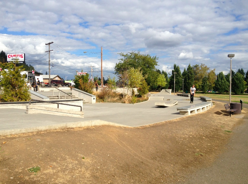 This is a plaza style park that starts with some rad little banks and then splits off into two sections.