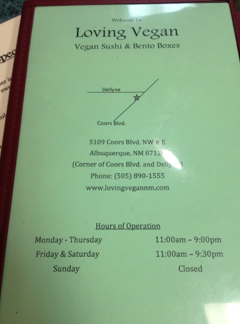 Loving Vegan was my first stop in ABQ! Usually eating pre-skate is a no go, but I read some great reviews of this all vegan sushi restaurant and they did not disappoint.