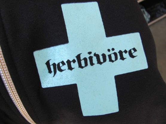My War on Xmas continues today with Herbivore Clothing Companie’s most metal hood! A black Zip-up with a horned and helmeted Koala emblazoned on the back. Herbivore cross on front made hesh.